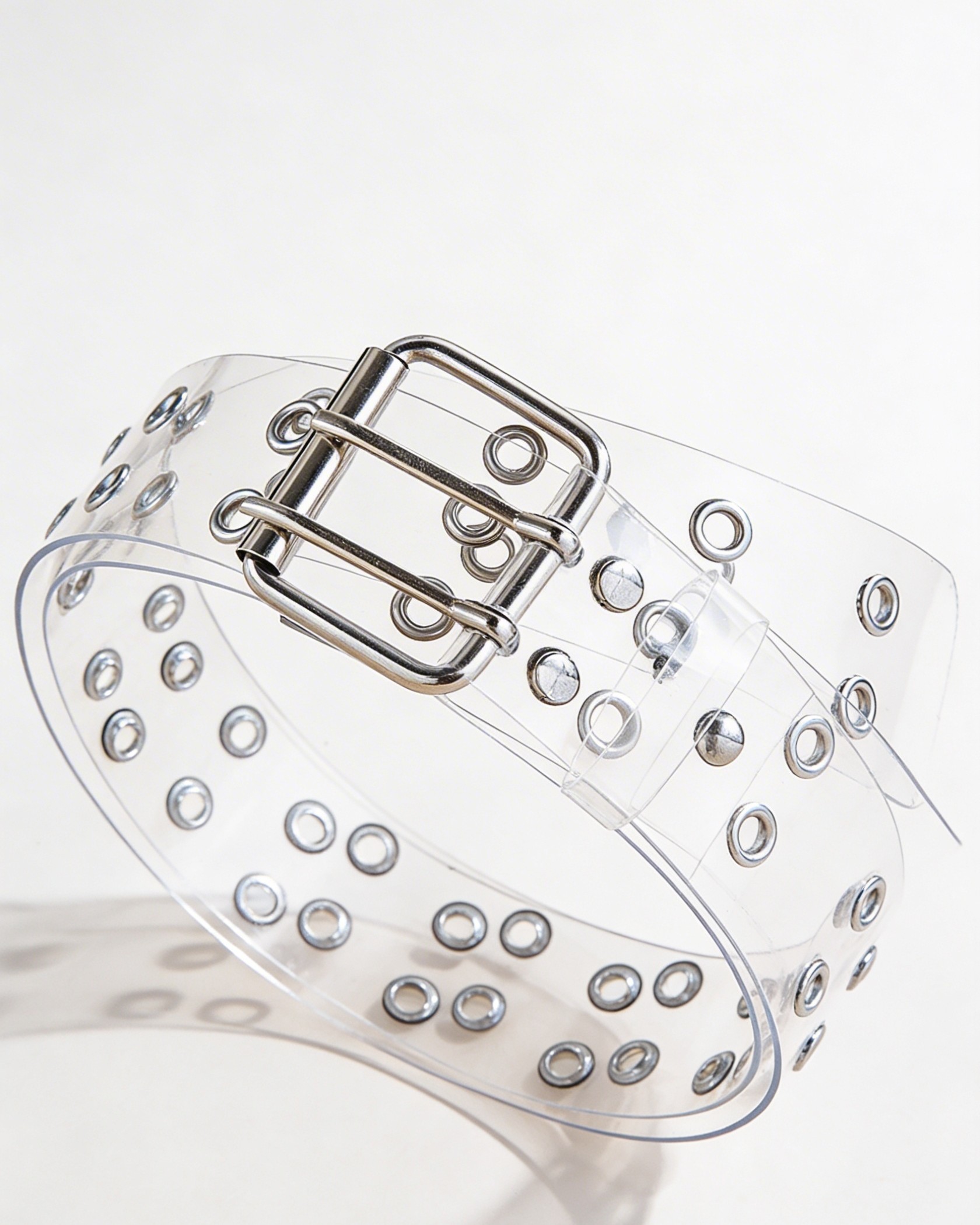 Inspirée de l’univers du denim, cette ceinture reprend les codes emblématiques du jean à travers ses œillets métalliques et sa structure utilitaire.